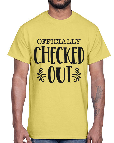 officially checked out 962#- funny- Cotton Tee