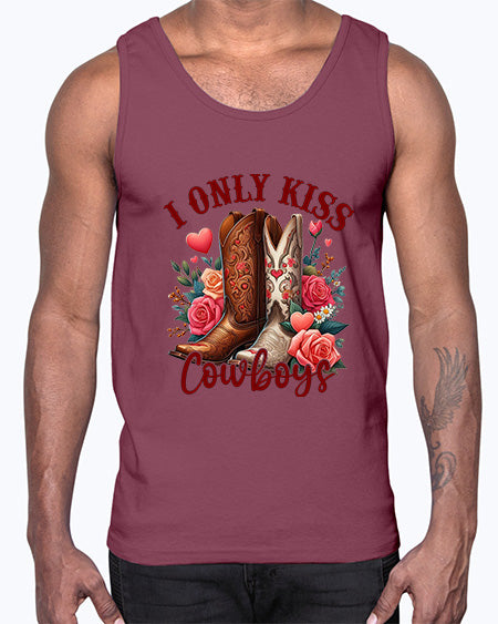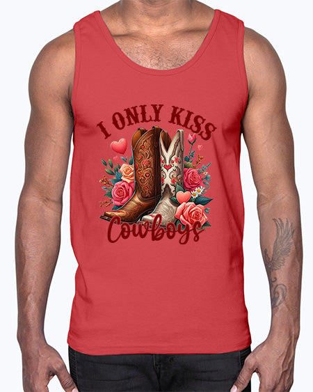 i only kiss cowboys howdy boot 594#- western- Cotton Tank