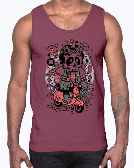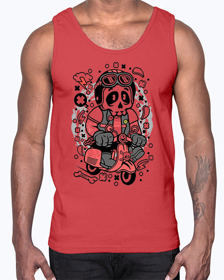 Skull Scooterist 1063#- skull and bones- Cotton Tank