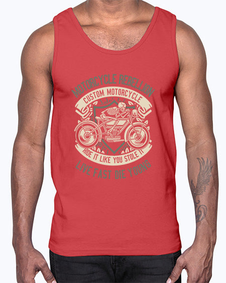 Skull Rebel Motorcycle 1062#- skull and bones- Cotton Tank