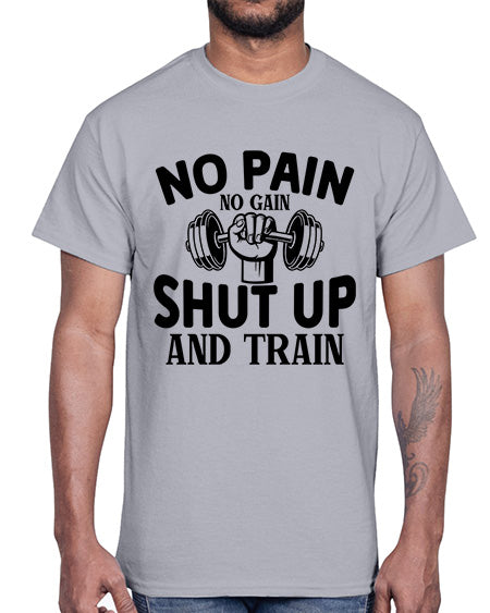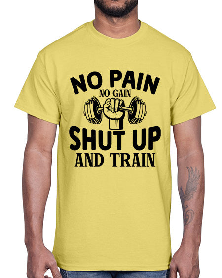 No Pain No Gain Shut Up and Train 477#- gym- Cotton Tee