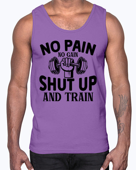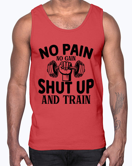 No Pain No Gain Shut Up and Train 477#- gym- Cotton Tank