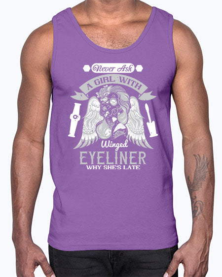 Never ask a girl with winged eyeliner why she’s late Style 189#-makeup Cotton Tank