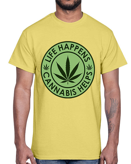 Life Happens Cannabis Helps 729#- marijuana- Cotton Tee