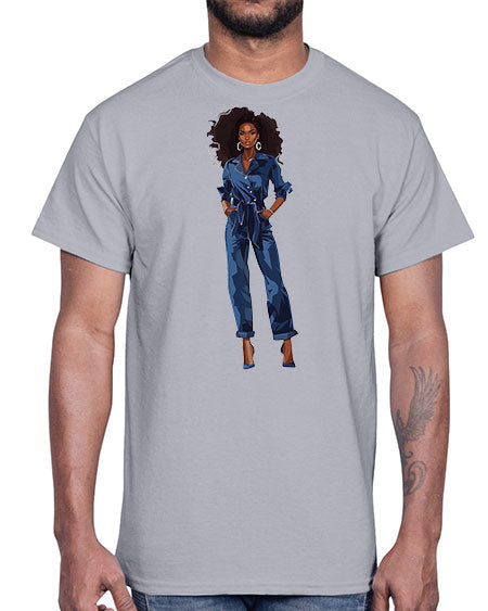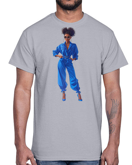 fashion girl in indigo 41#- fashion- Cotton Tee