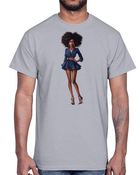fashion girl in indigo 46#- fashion- Cotton Tee