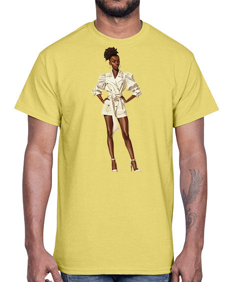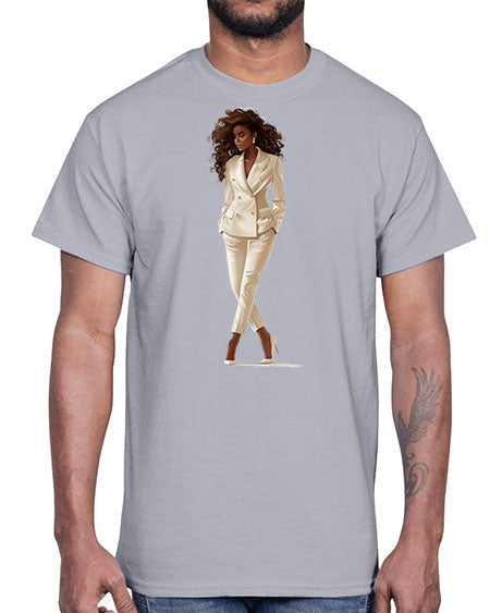 fashion girl in white 84#- fashion- Cotton Tee