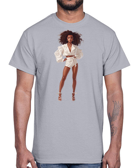 fashion girl in white 82#- fashion- Cotton Tee