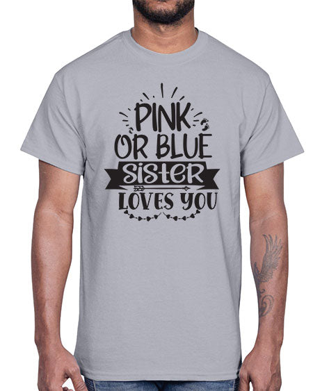 Pink or blue sister loves you 436#- pregnancy- Cotton Tee