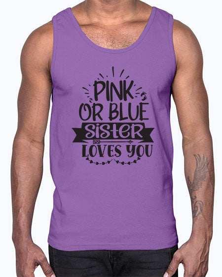 Pink or blue sister loves you 436#- pregnancy- Cotton Tank