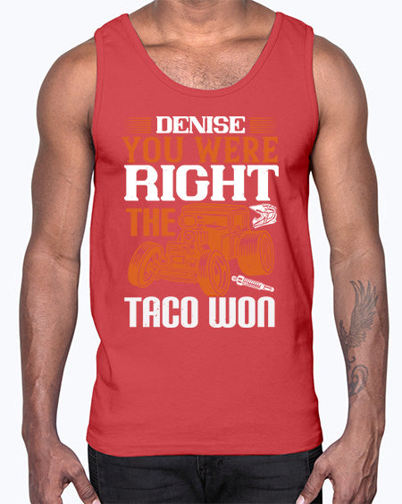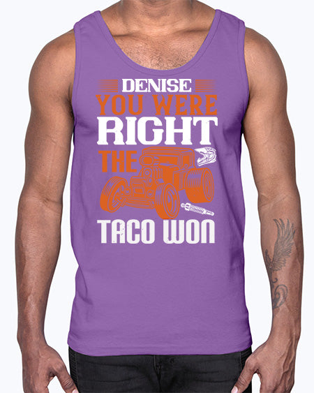 Denise you were right the taco won 108#- hot rod- Cotton Tank