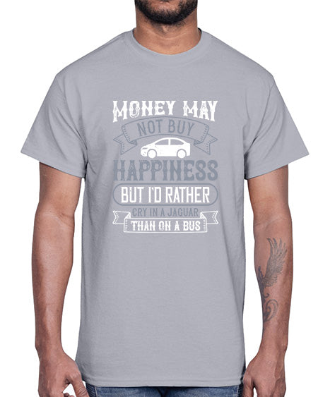 Money may not buy happiness but Id rather cry in a Jaguar than on a buss 43#- car- Cotton Tee
