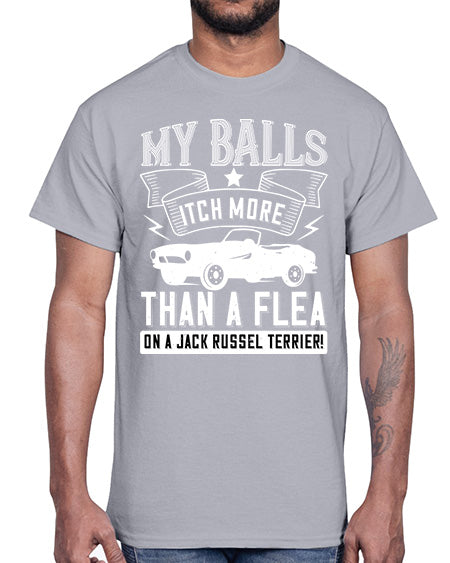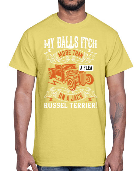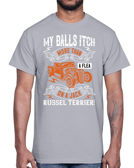 My balls itch more than a flea on a jack russel terrier 100#- hot rod- Cotton Tee