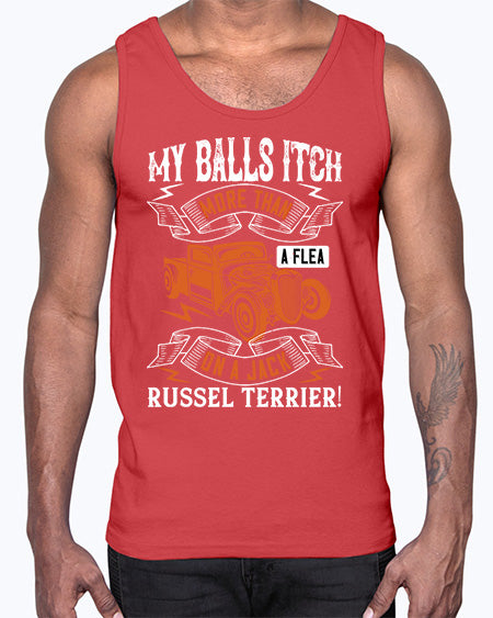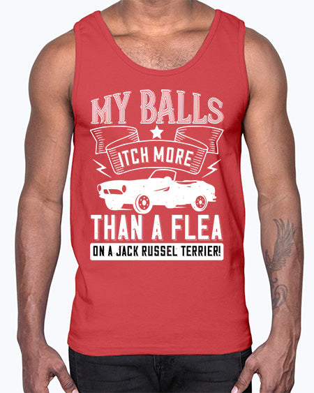 My balls itch more than a flea on a jack russel terrier 90#- hot rod- Cotton Tank