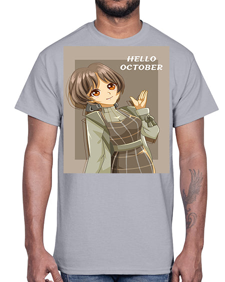 of beautiful girl in hello october 133#- anime- Cotton Tee