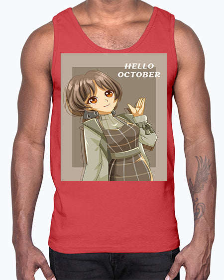 of beautiful girl in hello october 133#- anime- Cotton Tank