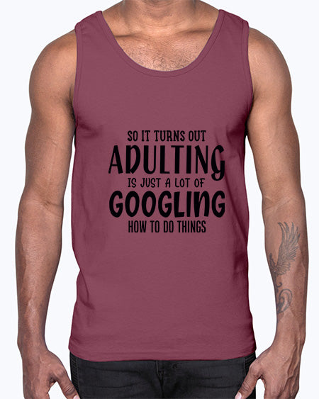 so it turns out adulting is just a lot of googling how to do things 85#- sarcastic- Cotton Tank