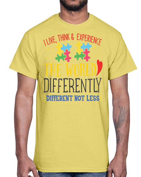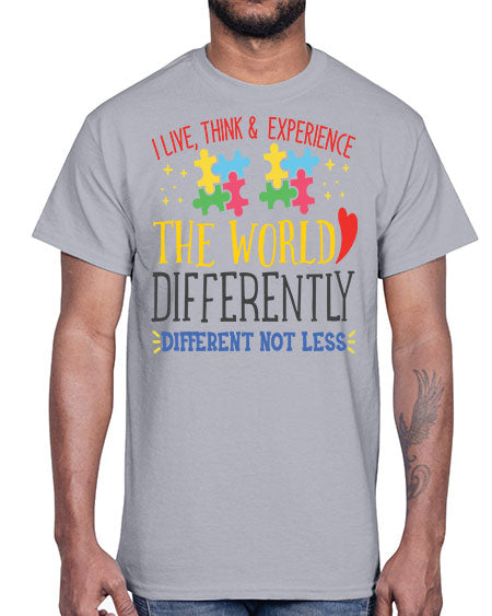 i live think experience the world differently different not less Style 20#- autism- Cotton Tee