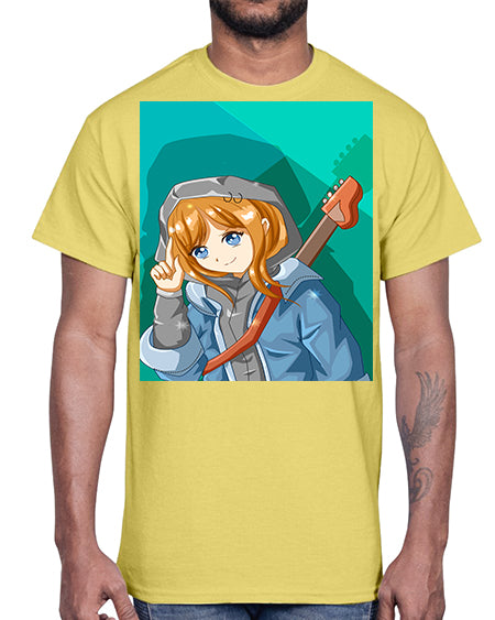 Swag and cute girl with a guitar 50#- anime- Cotton Tee