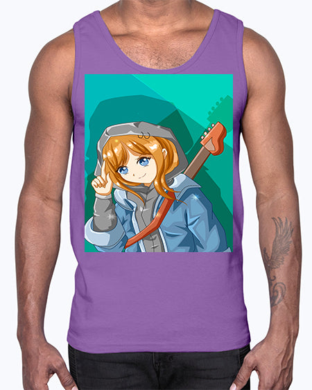 Swag and cute girl with a guitar 50#- anime- Cotton Tank