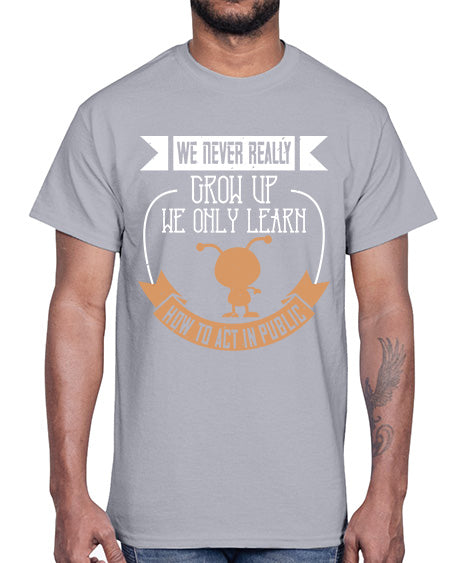 We never really grow up we only learn how to act in public 107#- funny- Cotton Tee