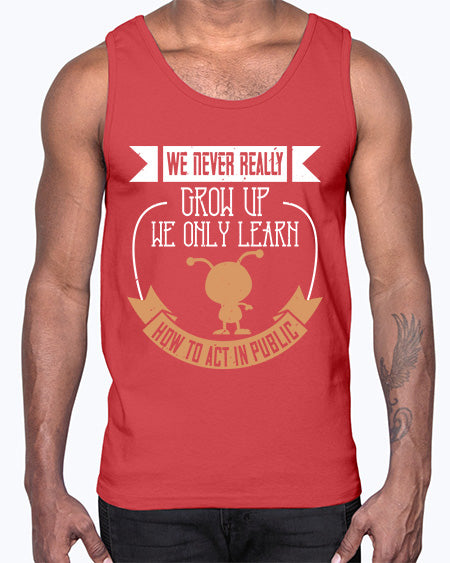 We never really grow up we only learn how to act in public 107#- funny- Cotton Tank