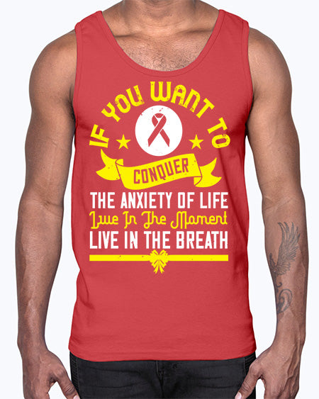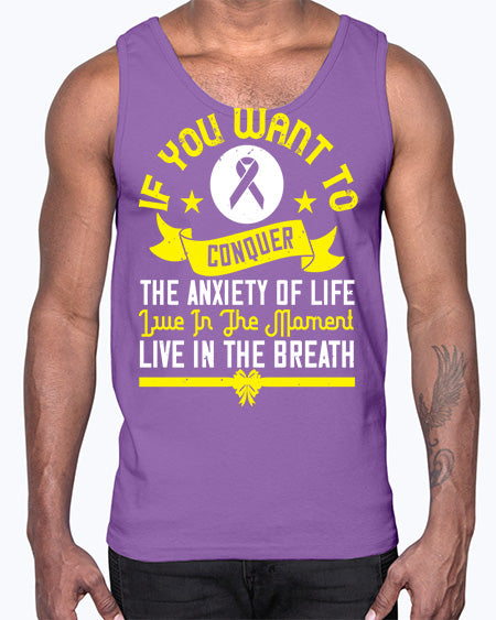 If you want to conquer the anxiety of life live in the moment live in the breath Style 41#- Self awareness- Cotton Tank