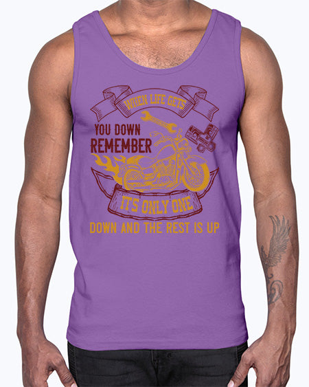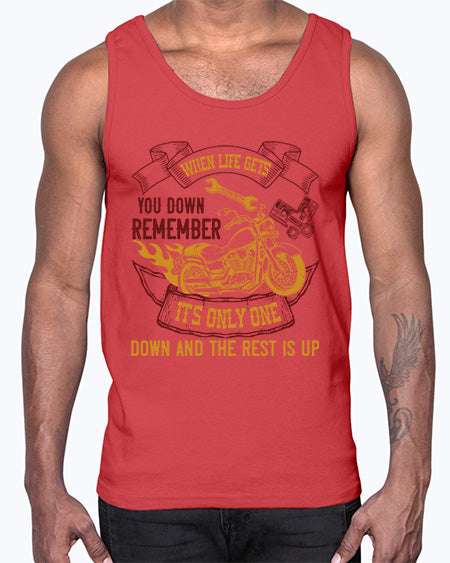 When life gets you down remember its only one down and the rest is up 77#- motorcycle- Cotton Tank