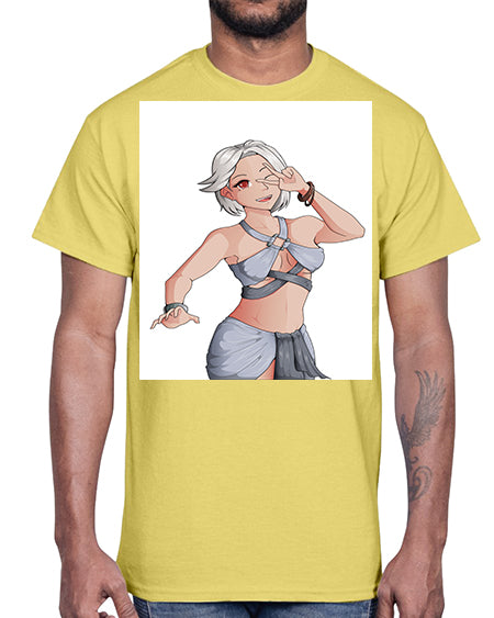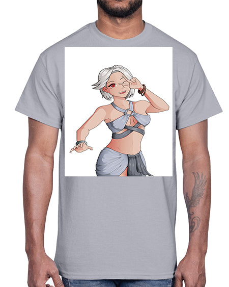 White hair girl wearing summer outfit 40#- anime- Cotton Tee