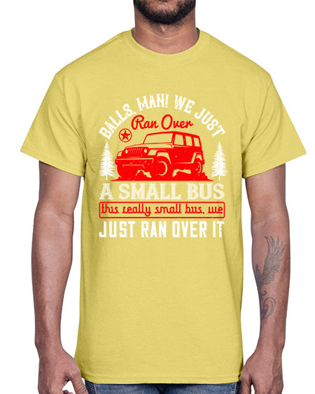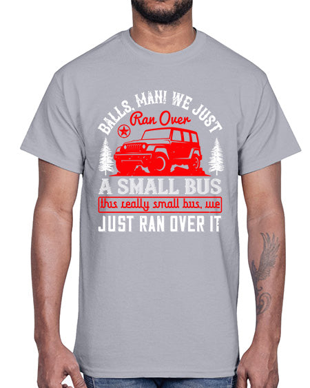 Balls man We just ran over a small bus This really small bus we just ran over it 58#- hot rod- Cotton Tee