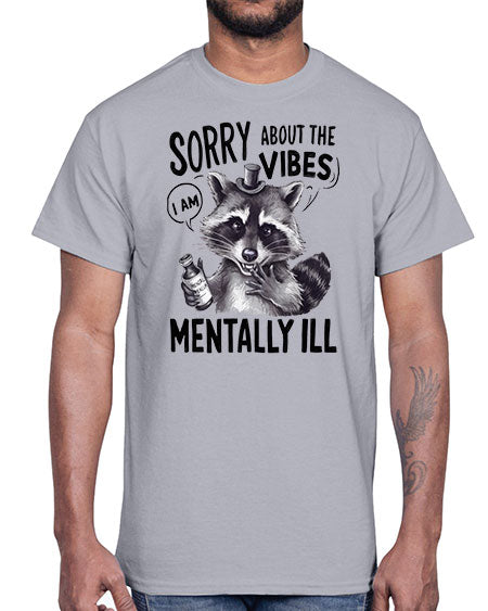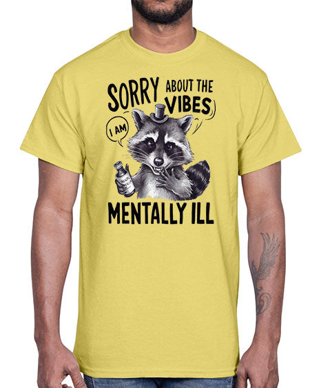 sorry about the vibes i am mentally ill 57#- raccoon- Cotton Tee