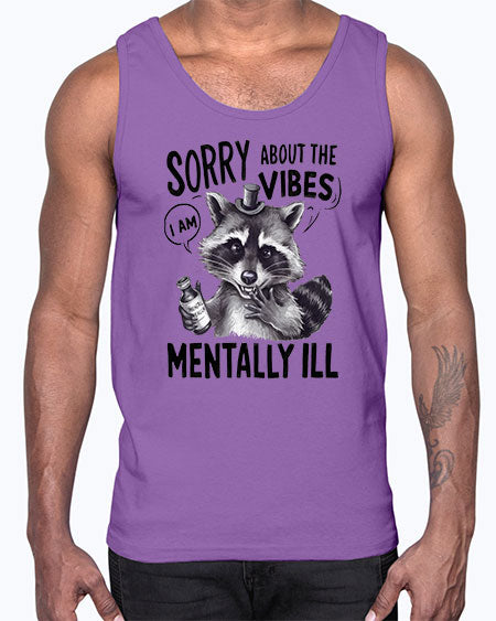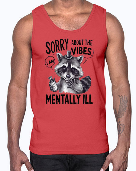 sorry about the vibes i am mentally ill 57#- raccoon- Cotton Tank