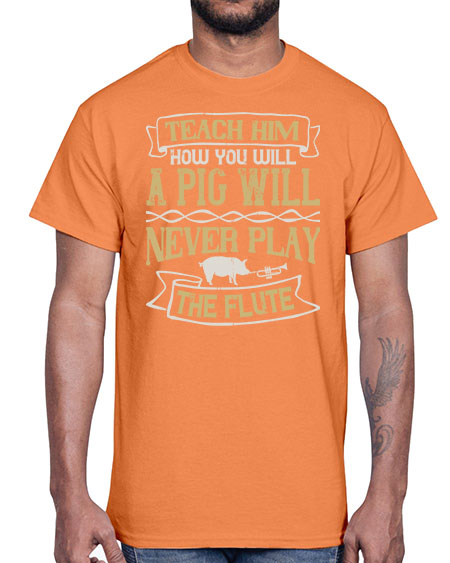 Teach him how you will a pig will never play the flute Style 28#- pig- Cotton Tee