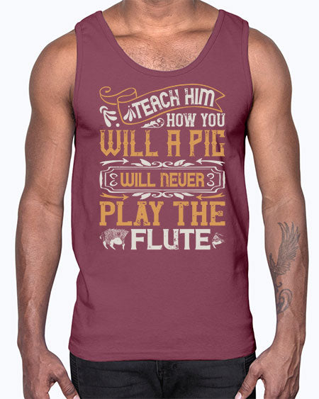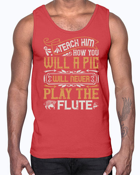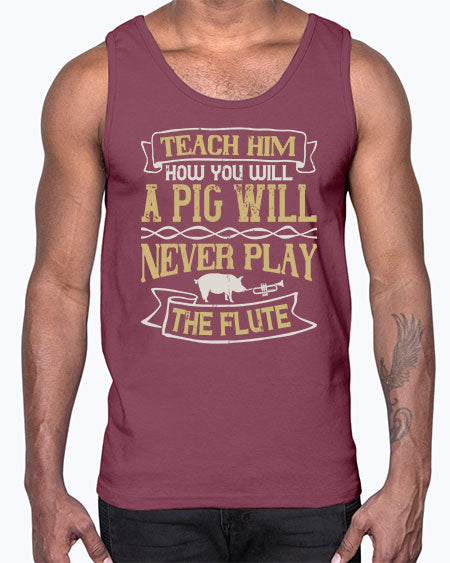 Teach him how you will a pig will never play the flutee Style 26#- pig- Cotton Tank