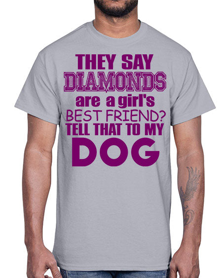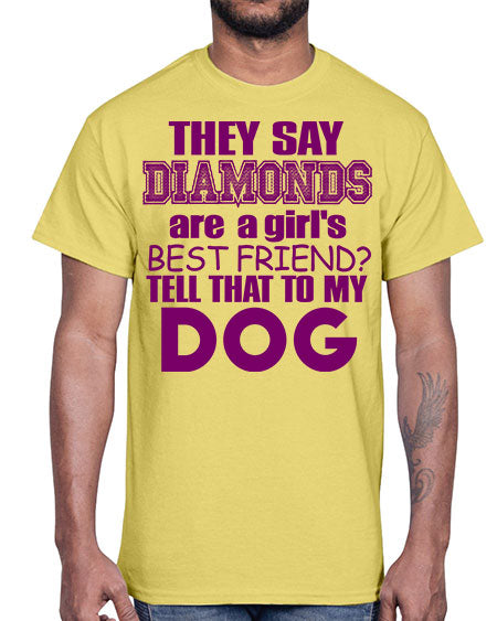 they say diamonds are a girls bestfriend tell that to my dog- dogs- Cotton Tee