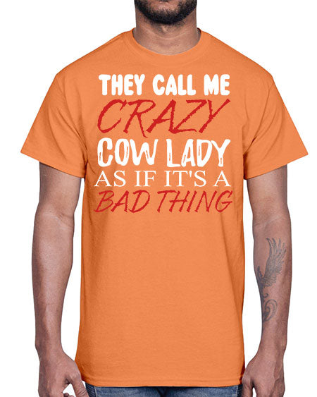 they call me crazy cow lady if its a bad thing- cow- Cotton Tee