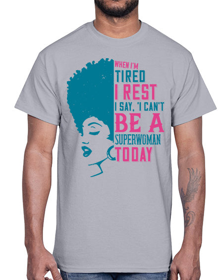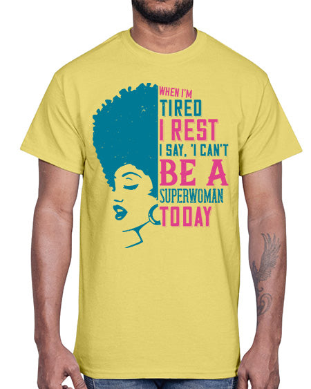 When Im tired I rest I say I cant be a superwoman today Style 11#- black afro- Cotton Tee