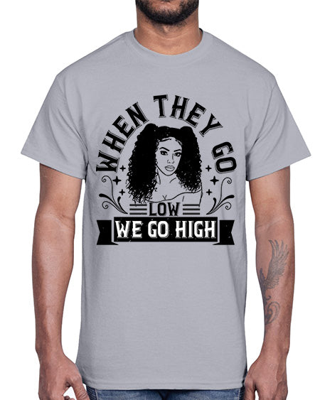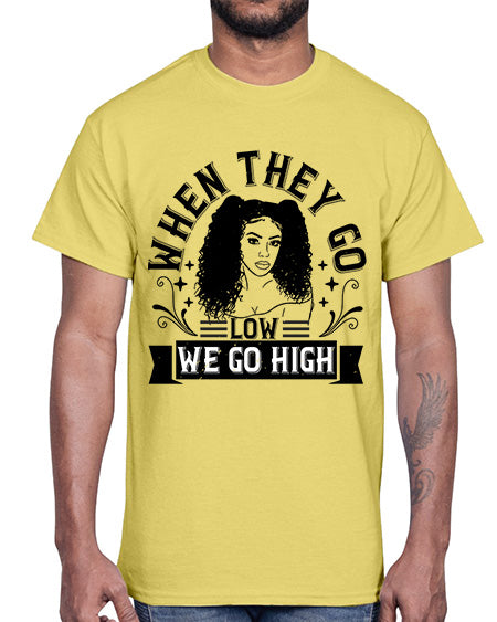 when they go low we go high Style 1#- black afro- Cotton Tee