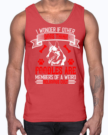 I wonder if other dogs think poodles are members of a weird religious cult Style 190#- dogs- Cotton Tank
