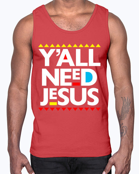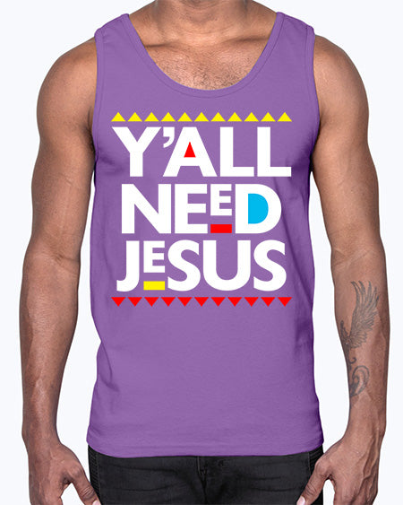 yall need jesus 4#- black words and phrases- Cotton Tank