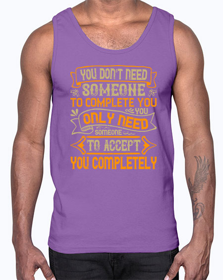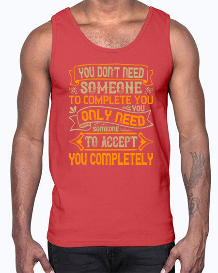 You dont need someone to complete you You only need someone to accept you completely Style 3#- pig- Cotton Tank