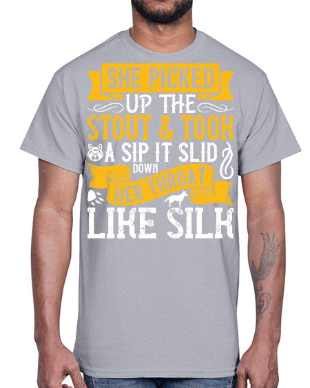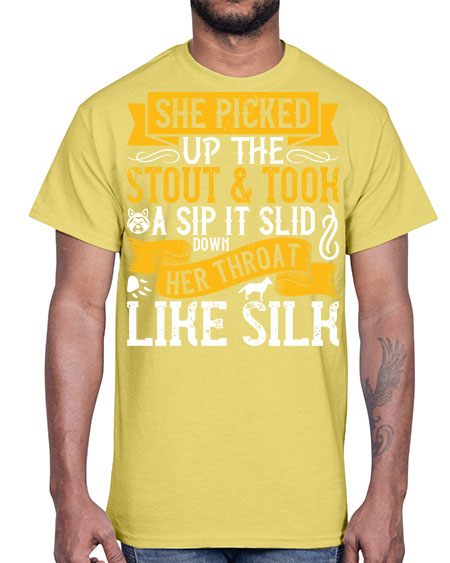 She picked up the stout and took a sip It slid down her throat like silk Style 25#- dogs- Cotton Tee