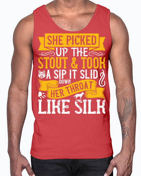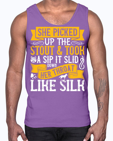 She picked up the stout and took a sip It slid down her throat like silk Style 25#- dogs- Cotton Tank