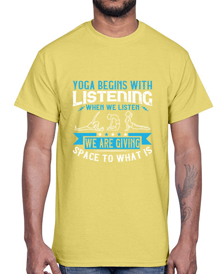yoga begins with listening when we listen we are giving space to what is 614#- yoga- Cotton Tee