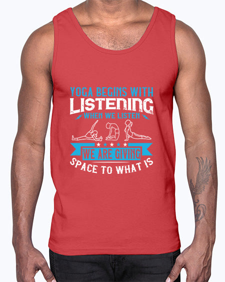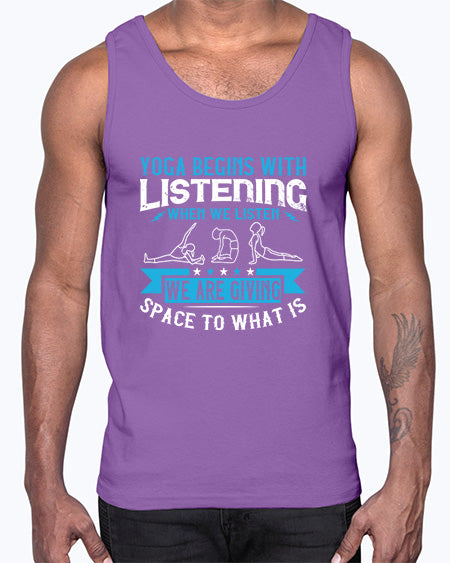 yoga begins with listening when we listen we are giving space to what is 614#- yoga- Cotton Tank