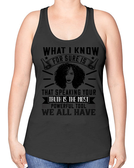 What I know for sure is that speaking your truth is the most powerful tool we all have Style 13# - black afro -Racerback Tank