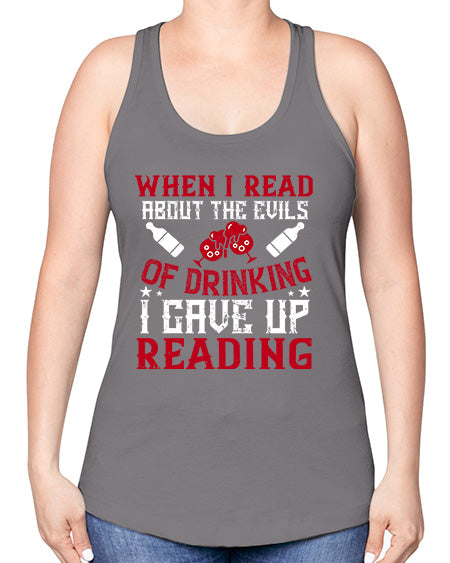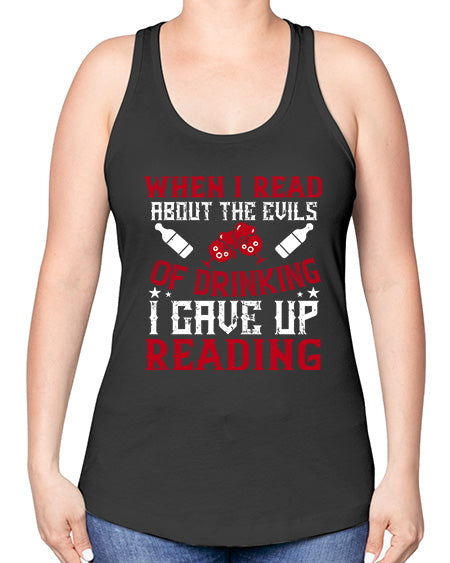 when i read about the evils of drinking i gave up reading 464# - drinking -Racerback Tank