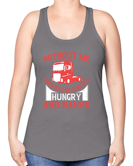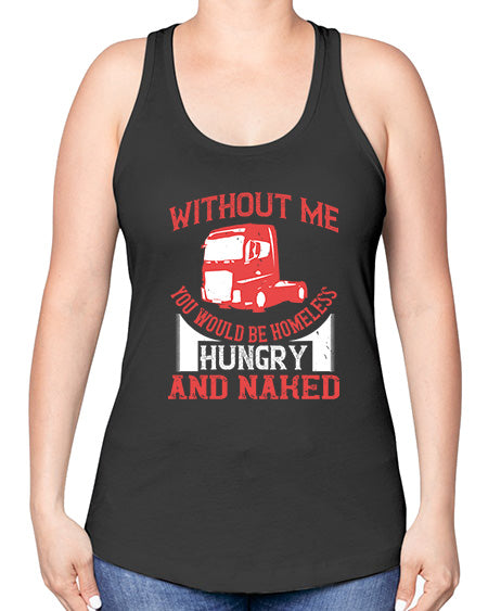 without me you would be homeless hungry and naked Style 476# - truck driver -Racerback Tank