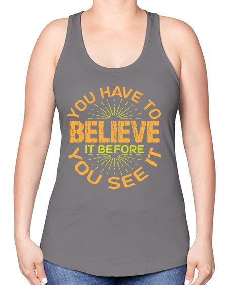 You have to believe it before you see it540# - entrepeuner -Racerback Tank