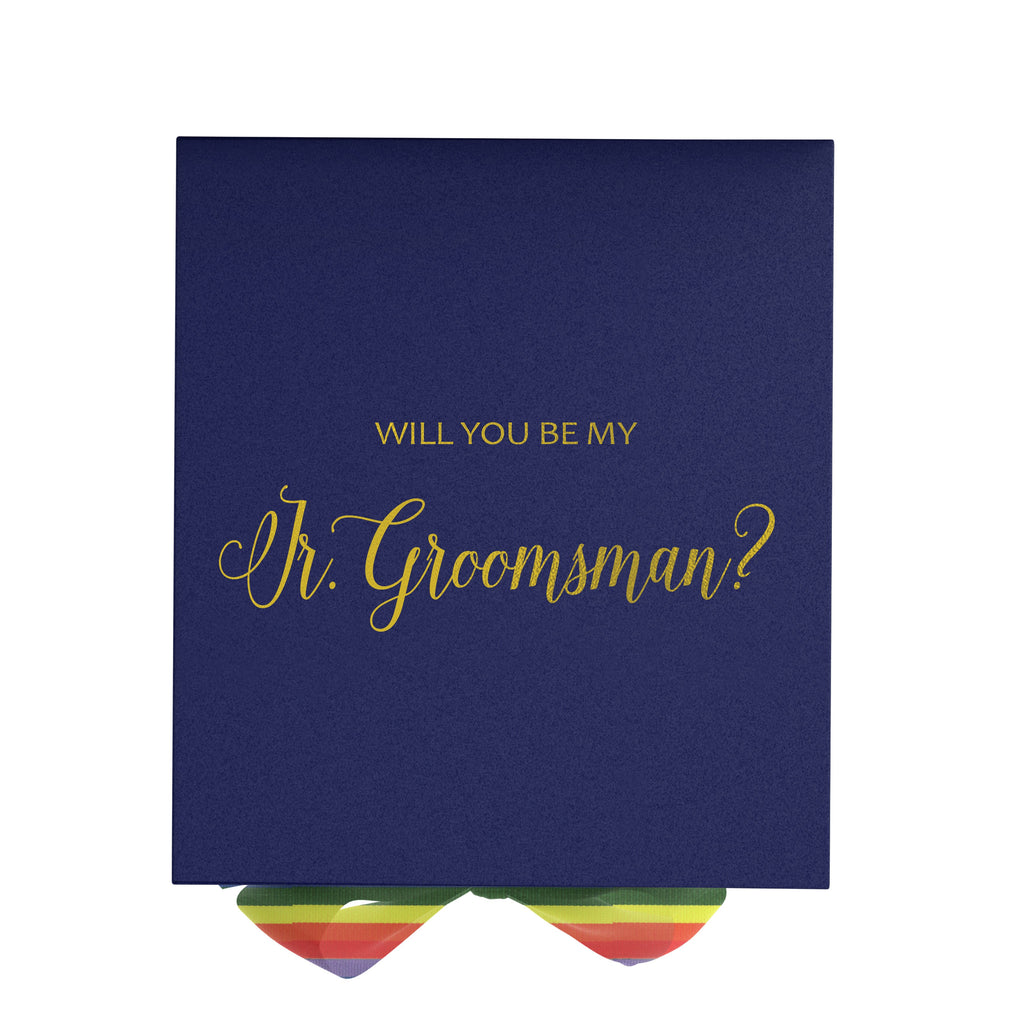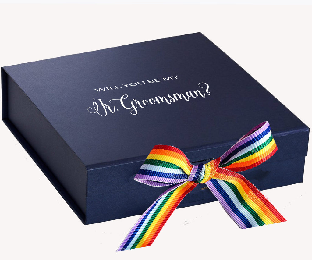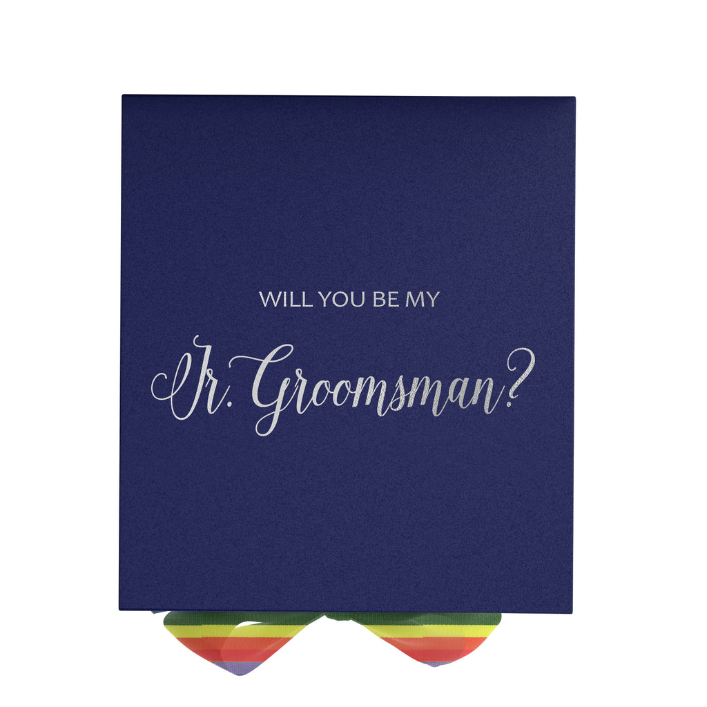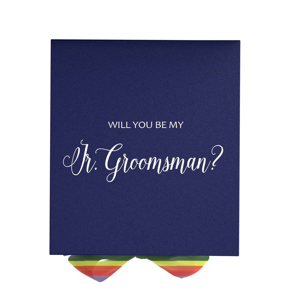 Will You Be My jr groomsman? Proposal Box Navy - No Border - Rainbow Ribbon
